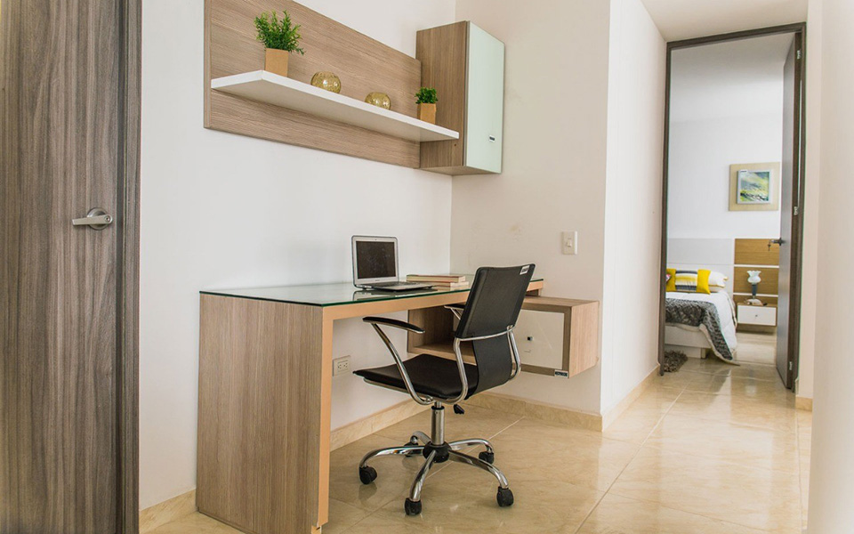 Apartamentos full acabados, con balcon, closet de pared a pared, zonas de ropas ventiladas, excelente iluminacion natural, puertas internas en madera de piso a placa. Adicionalmente cuenta con espacio para estudio.