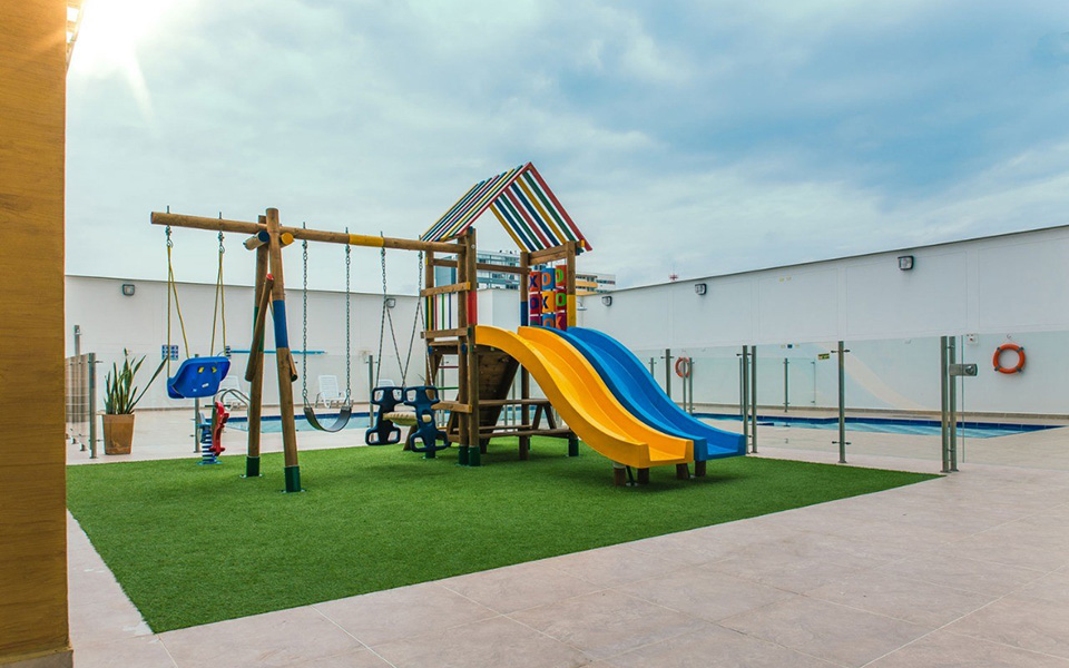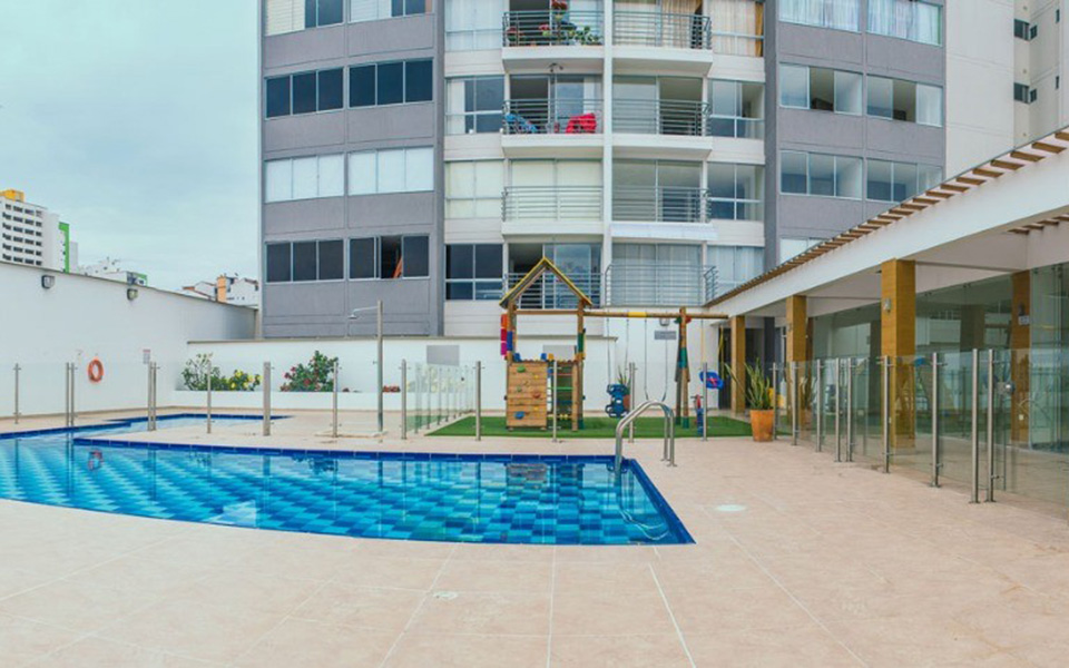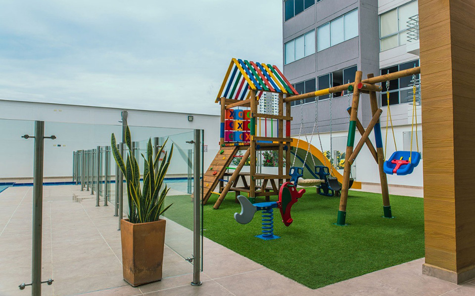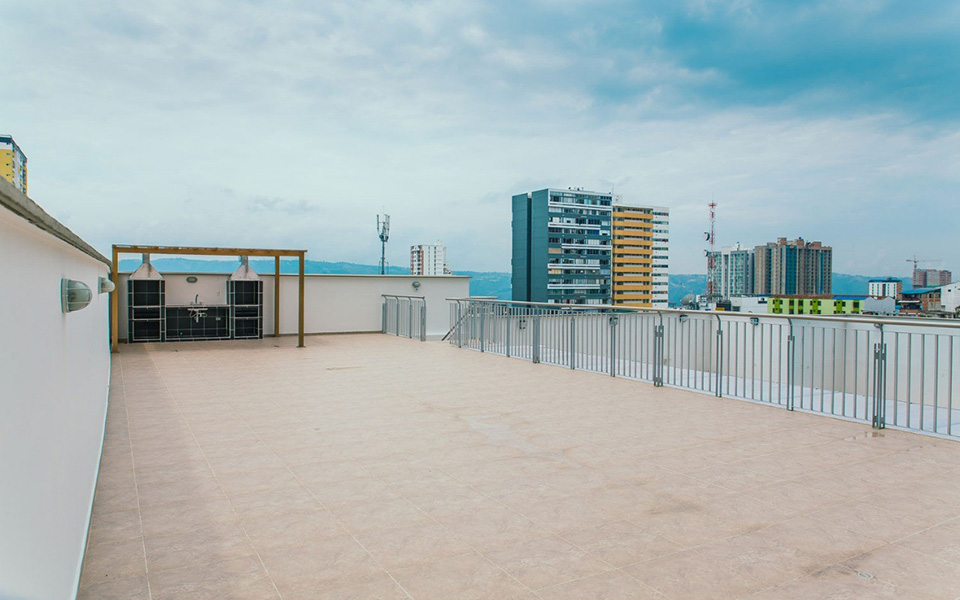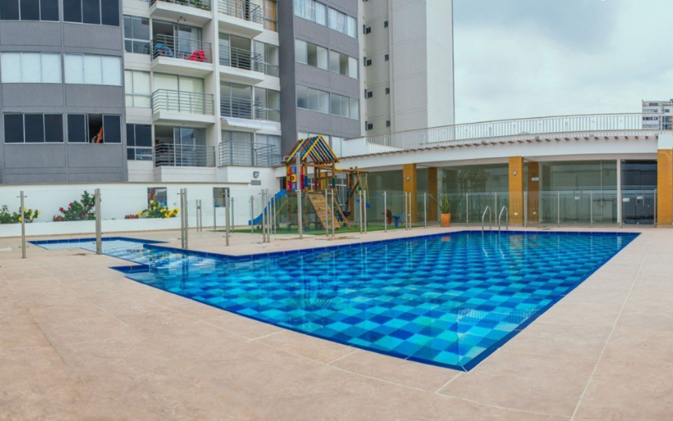 Cuenta con una zona social conformada por terraza y bbq, piscinas para niños y adultos.